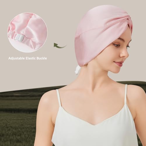 100% Mulberry Silk Bonnet for Sleeping Women, 22 Momme Grade-6A Double Layer Silk Hair Wrap With Elastic Band Stay On Head All Night(1PCS,Pink)