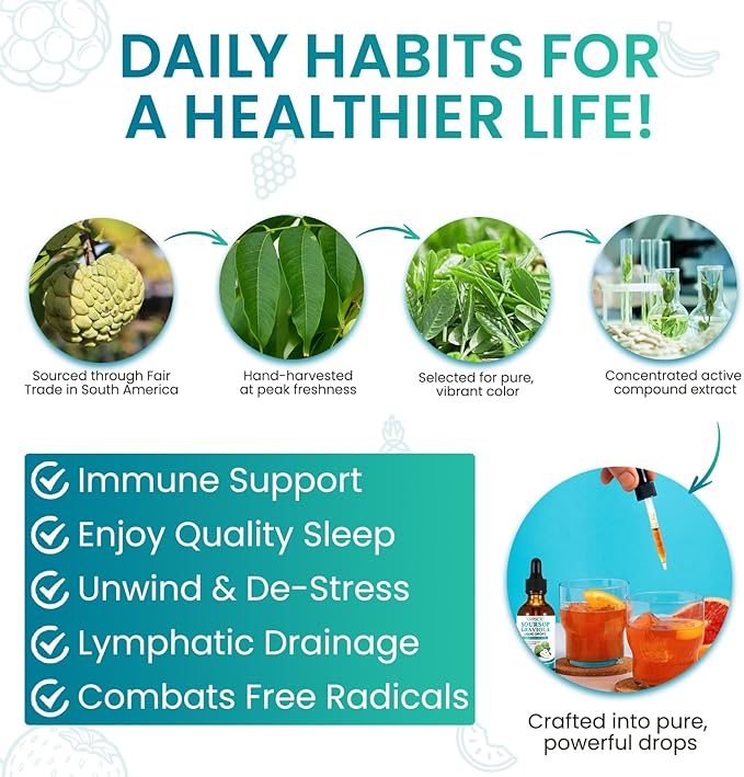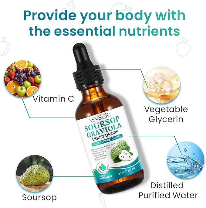 • Health support: Soursop drops helps nutrients to fortify cells, bolster the immune system. It supports cell health and is rich in fiber and antioxidants,natural ingredients and vegan friendly, something for everyone