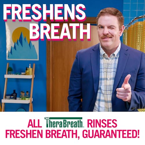 - 1 liter (33.8 fl oz) bottle of TheraBreath Anticavity Oral Rinse alcohol-free mouthwash strengthens enamel and freshens breath in Sparkle Mint flavor