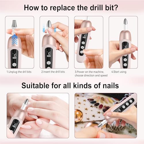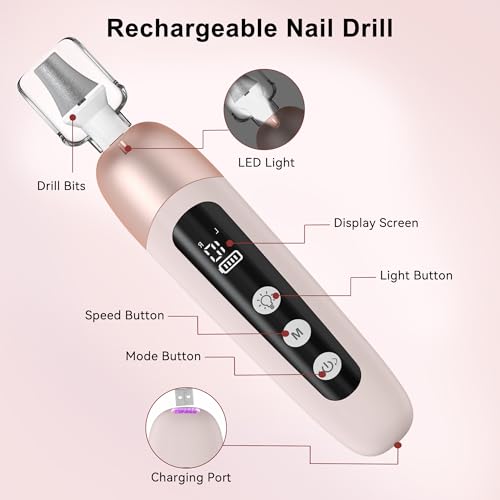 - 9 IN 1 ELECTRIC TOE NAIL GRINDER: With 8 efile toenail drill bits, 1 protective cover, 20 sanding belts, 1 charging cable and 1 product manual, this Manicure Pedicure Nail Drill Set can provide delicate nail services for your hands or feet, such as filing, trimming and polishing nails, removing calluses and smoothing corns, also suitable for gel nails.