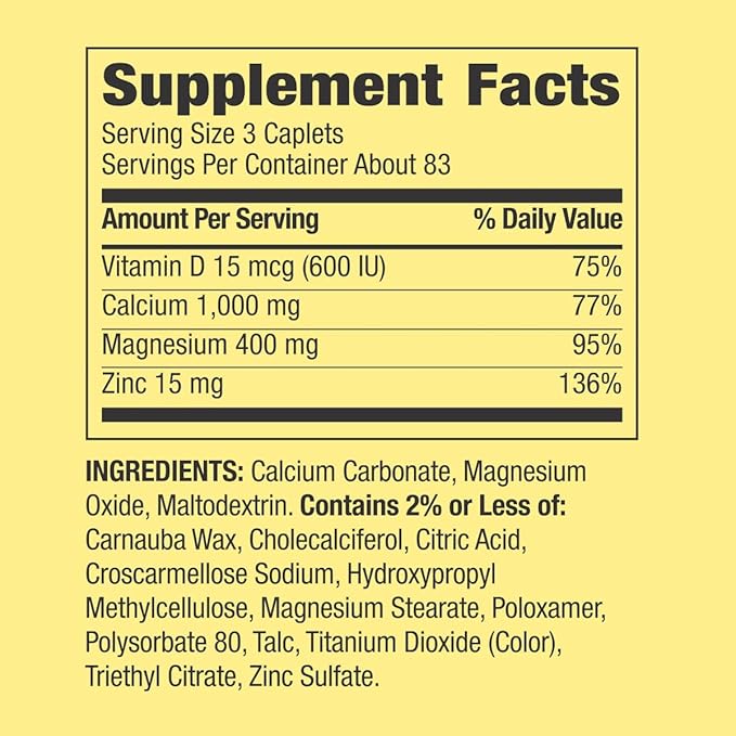 • Primary Supplement Type : Calcium, Vitamin D, Magnesium, Zinc