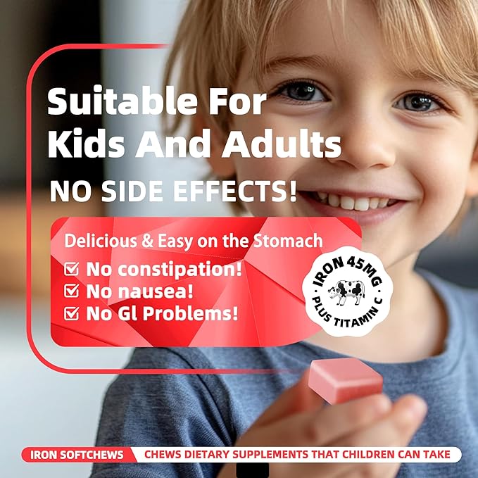 • Juicy Strawberry Flavor - Bursting with sweet Strawberry goodness, our individually wrapped iron chewables are your ticket to on-the-go wellness. The fusion iron supplement leaves taste buds dancing with delight, without a metallic aftertaste or indigestion