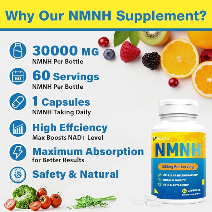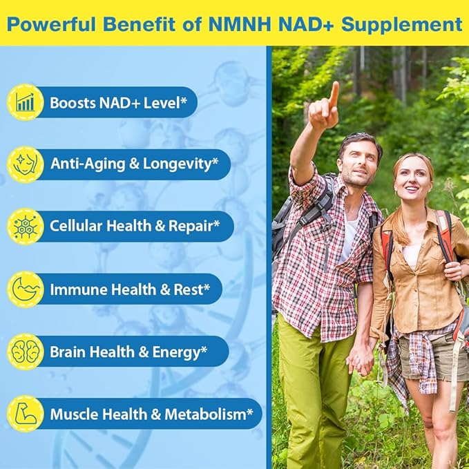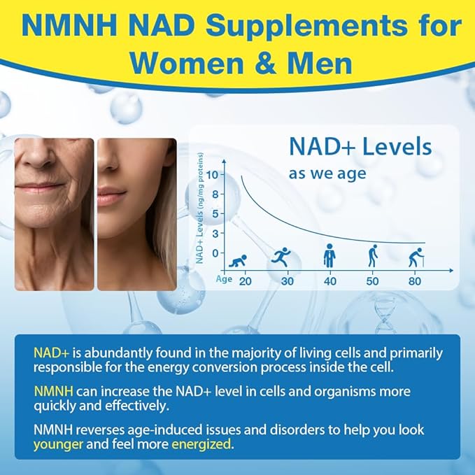 • Powerful NMNH NAD+ Supplement: Recent research suggest NMNH may be the most effective supplement on the market for supporting NAD+ levels. NAD+ levels fall as wel age, and NMNH nad supplements for women and men may help boost NAD+ levels, cellular health, anti aging, energy, immune, focus and muscle health