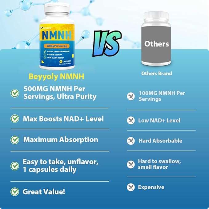 • Complete Anti-Aging: Backed by scientific studies, our NMNH supplement 500mg pure organic is designed to increase NAD plus levels in your body for healthy aging, skin health and longevity benefits. NMNH boosts nad anti-aging supplement can make you rejuvenated from the inside out