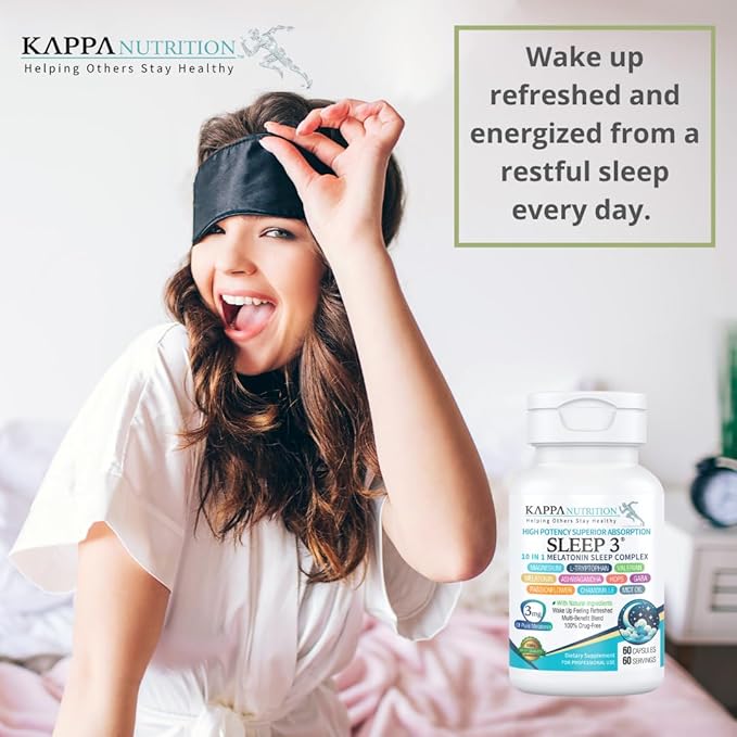 - FALL ASLEEP, STAY ASLEEP: Kappa Nutrition's 10 in 1 formula ensures you wake up refreshed every morning, restoring your natural sleep cycle, soothing the body, and calming the mind. This non-habit-forming sleep supplement is easy to swallow, providing a worry-free solution for a better night's rest.