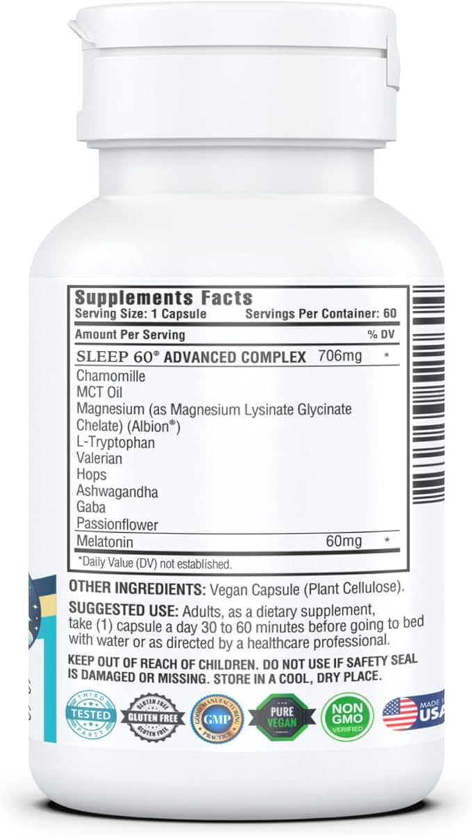 - DEVELOPED BY A NEUROLOGIST: Sleep 60, 10 in 1 Complex, developed by a neurologist, aids patients and millions of others struggling with sleeplessness. With its unique blend of 10 ingredients, this sleep aid effectively combats nighttime troubles, offering a safe solution for inducing sleep.