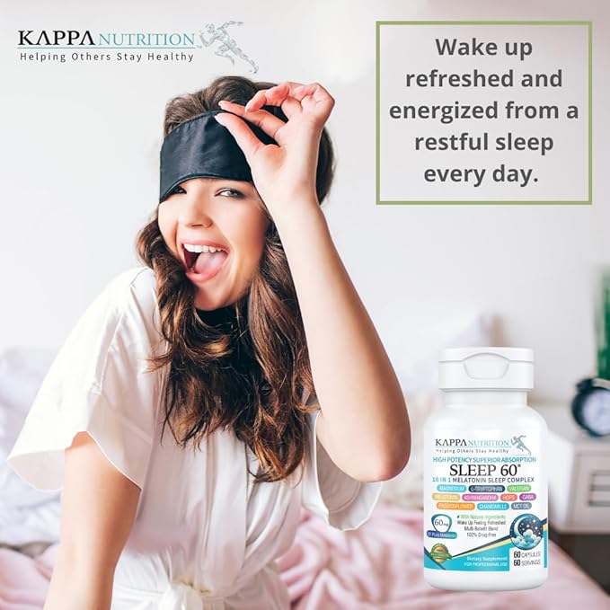 - FALL ASLEEP, STAY ASLEEP: Kappa Nutrition's 10 in 1 formula ensures you wake up refreshed every morning, restoring your natural sleep cycle, soothing the body, and calming the mind. This non-habit-forming sleep supplement is easy to swallow, providing a worry-free solution for a better night's rest.
