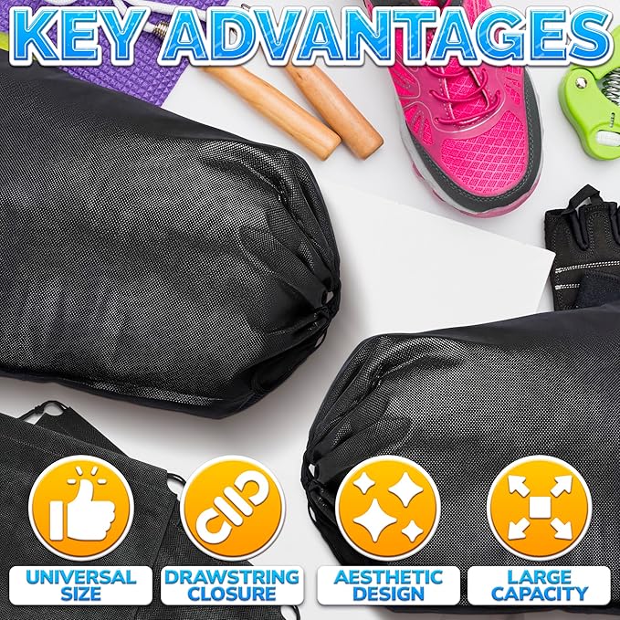 • Premium Quality Cinch Bags Drawstring: Made of premium-quality non-woven fabric material, shoe bags for traveling are long-lasting, no smell, stain-resistant, foldable, breathable, and lightweight