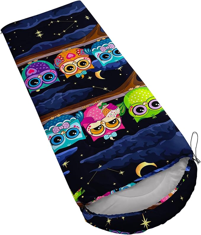 - Unique Owl Design:This Owl pattern sleeping bag is made of 3D digital printing with vibrant colors and patterns,size: 31W x 90L inches,temperature range: 32℉-77℉ (0℃-25℃),it also also have a weather resistant waterproof design to keep you warm and prevent you from any dampness,can be used in 3 seasons
