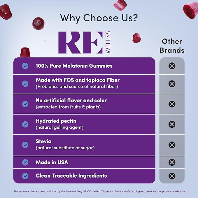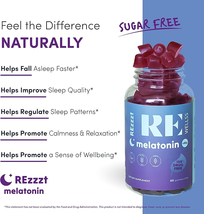 - CONVENIENT AND FLAVORFUL: With 60 gummies per container, REWELLS melatonin gummies offer 5mg melatonin in each serving. Enjoy the ease of a tasty sleep gummies that seamlessly fits into your nightly ritual. Just take 2 gummies 60 minutes before bedtime.