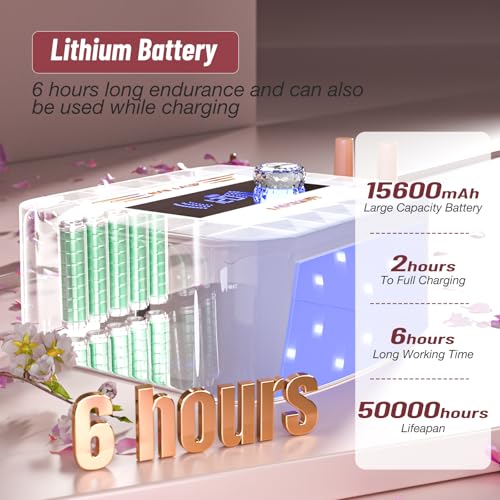 - [Cordless Rechargeable Nail Lamp] This ultra long endurance UV LED nail lamp cordless is equipped with a rechargeable battery, which can be used for 6 hours after being fully charged (One hour). The service life exceeds 50000 hours. This portable UV light for gel nails can be carried anywhere without an extension cord. (Note: You can use it while charging)