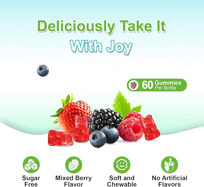 • Vegan Gummies, Yummy, 100% Organic: These ashwagandha gummies are sugar-free. Based on pectin and gluten-free, our ashwagandha gummies contain the right components which are vegan-friendly. Natural mixed berry flavor, soft in the mouth, easy to chew