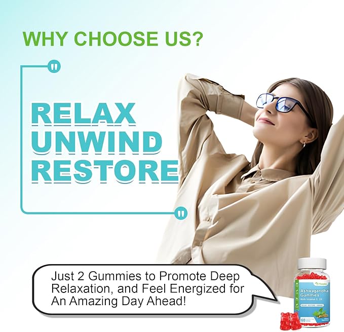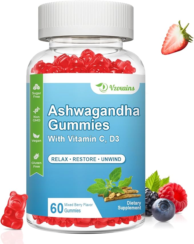 2 Pack Ashwagandha Gummies & Vitamin D Gummies for Women & Men - with Vitamin C for Support Calm Mood, Relaxation & Immune, Mixed Berry 60 Cts