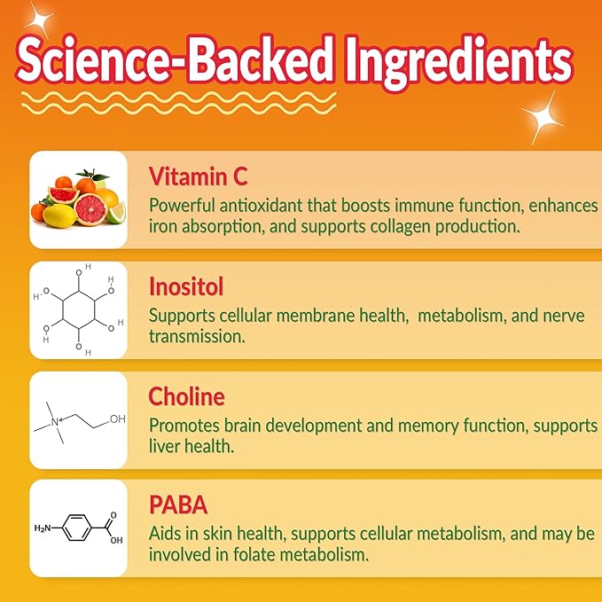 - ✨Smooth Energy, Calm Mind, Methylation & Healthy Immunity: Vitamin B helps convert food into cellular energy, maintain nervous system health & support the body’s ability to manage stre-ss, resulting in healthy energy levels & improved mood. Our formula includes Vitamin C to boost immunity and antioxidant levels, along with key co-nutrients Choline, Inositol, and PABA to support energy metabolism, nervous system health, and cellular function. Take 2 gummies daily for all-day nutrient coverage.