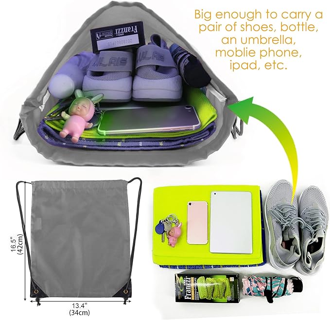 • 【DURABLE】Our draw string bag is made from polyester fabric, so they are shape-retaining strongly. You can fold them up when not in use, and they won't take up much space when folded, and they still look like new next time you use them. And the sewing of the drawstring bags is strong, which makes them more sturdy to hold heavy stuff safely and not easy to tear, the drawstring backpack can last for years, it can store your things when you don't want it.