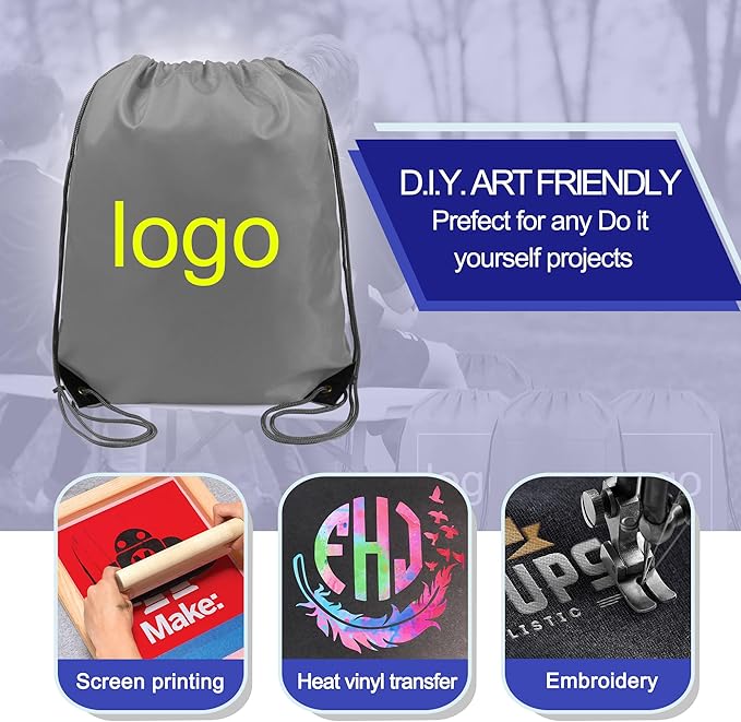 • 【FEEL FREE TO DIY】:Our drawstring backpack bulk is perfect for various DIY projects. You can DIY your favorite names, logos, characters, and images on it as a special gift, team pack, giveaway, or prize by using thermal printing, tie-dye, fabric markers, paint, or even brushes. Print or draw your DIY design on the string backpack by yourself can be held as a very memorable event. Send your designed draw string bags pack to your families or friends and bring them happiness.