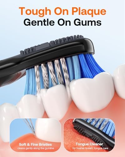 • Sleek and Lightweight Travel Toothbrush: Our rechargeable toothbrush's slim design and lightweight build make packing a breeze; Your Perfect On-the-Go Companion with a 60 days battery life, stay fresh and confident every day, everywhere