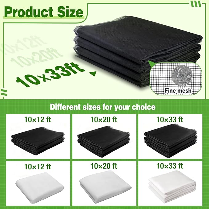 - Ultra-fine Garden Screen: The dense mesh design makes it ideal for summer use in beds, balconies, porch, window, or patios. It's also perfect for garden application, safeguarding your plants from birds and other animals.