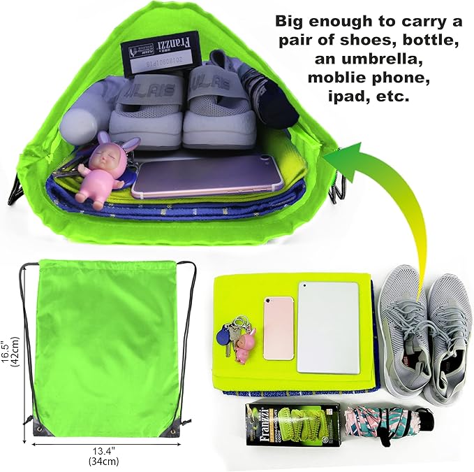 • 【DURABLE】Our draw string bag is made from polyester fabric, so they are shape-retaining strongly. You can fold them up when not in use, and they won't take up much space when folded, and they still look like new next time you use them. And the sewing of the drawstring bags is strong, which makes them more sturdy to hold heavy stuff safely and not easy to tear, the drawstring backpack can last for years, it can store your things when you don't want it.