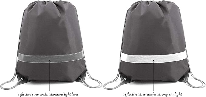• 【STURDY & EXTRA REFLECTIVE STRIP】-- The bags are very sturdy and withstands daily wear and tear. Double stitches for all seams, making the bag is not easy to fall off and can last long. Our drawstring bags have PU leather reinforced corners, durable drawstring cords, and metal eyelets. These designs ensure that our drawstring bag is more durable. Also, the extra reflective strip can enhance the high visibility to ensure your safety while outdoor in the dark or dusk.