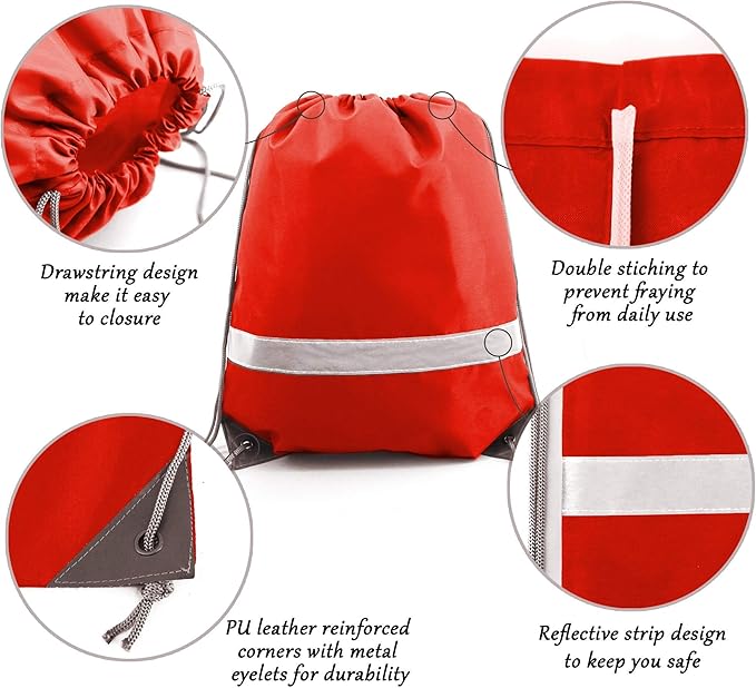 • 【STURDY & EXTRA REFLECTIVE STRIP】-- The bags are very sturdy and withstands daily wear and tear. Double stitches for all seams, making the bag is not easy to fall off and can last long. Our drawstring bags have PU leather reinforced corners, durable drawstring cords, and metal eyelets. These designs ensure that our drawstring bag is more durable. Also, the extra reflective strip can enhance the high visibility to ensure your safety while outdoor in the dark or dusk.