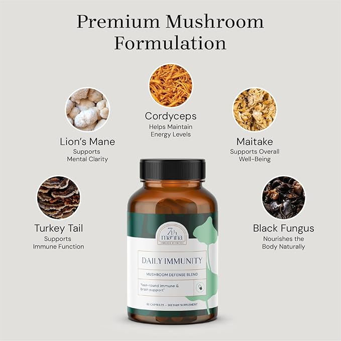 - Immune & Energy Support: Boost daily vitality with our mushroom supplement featuring turkey tail mushroom capsules and cordyceps. This adaptogenic formula offers immune support and sustained energy—no caffeine crashes, just clean, natural focus.