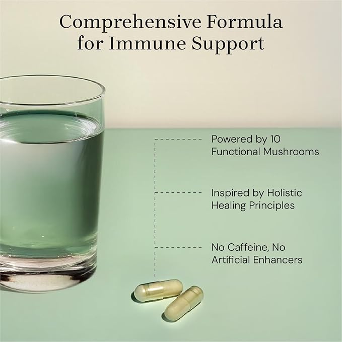 - Daily Mushroom Complex Capsules: Easy-to-swallow mushroom complex capsules fit into any routine. Get the benefits of adaptogenic mushrooms and nootropic support with just two mushroom capsules a day—zero sugar, zero stimulants.
