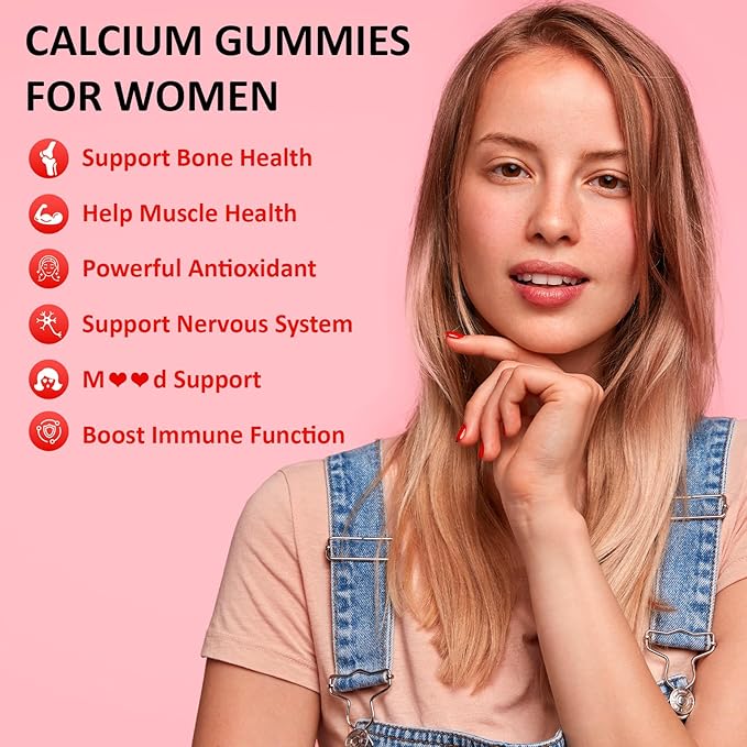 • Vitamin A C E & Zinc: Our calcium 1200 mg with vitamin d3 gummies also include Vitamins A, C, and E, plus Zinc, delivering essential antioxidants. This calcium supplement for women supports cellular health, and immune system