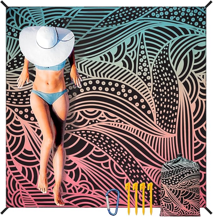 • 【LIGHTWEIGHT】0.81lb, 79”×83” sized beach/picnic blanket. It can folded into the 5.1”×7.5” carried bag, convenient to carry
