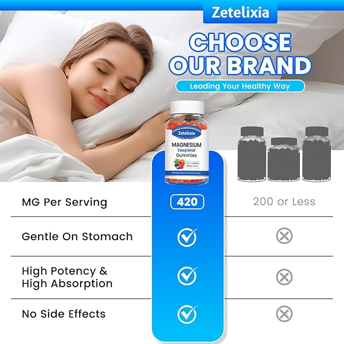 - Advanced Magnesium Glycinate 420MG: ZETELIXIA magnesium gummies for sleep contain 420mg of the highest potency magnesium glycinate, which has a higher bioavailability and absorption rate than other forms of magnesium, is gentle on the stomach, and provides maximum absorption