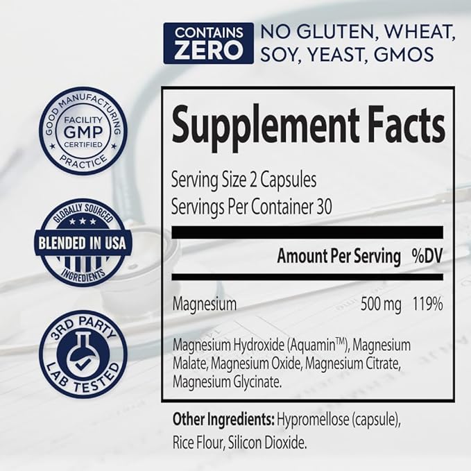 - High Quality, Healthy Ingredients: 5-in-1 Magnesium Complex is made using the best high-quality ingredients. It is Vegan friendly, Non-GMO, Soy-Free, Yeast-Free, Gluten-Free, and Magnesium Stearate-Free. All products are third-party tested for purity, accuracy, microbes, and heavy metals.