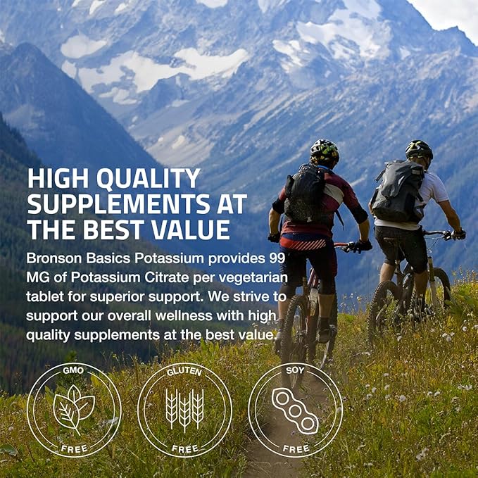 - High Quality & Great Value: Bronson Basics Potassium provides 99 MG of high quality Potassium Citrate per vegetarian friendly tablet. Take 1 tablet daily to support overall good health and well-being.* We strive to support your overall wellness through high quality supplements at an affordable value.