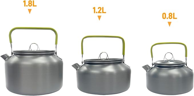 - Food-grade Kettle: This camping kettle is made of hard anodized aluminum, which makes the camping kettle have higher scratch resistance and stability than ordinary alumina. Hard-anodized aluminum conducts heat quickly,stand high temperature, corrosion-resistant, rust-free,built to last. Updated silicone-coated handle for great anti-hot effect.