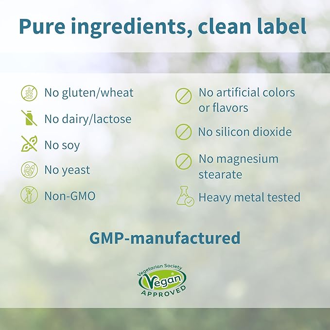 - PURE & CLEAN: we only use clean and hypoallergenic ingredients (no sugar, glucose syrup, artificial colors, flavors, sweeteners, or preservatives). Tested for heavy metals and lab-verified, GMP-manufactured, recyclable & BPA-free packaging, vegan