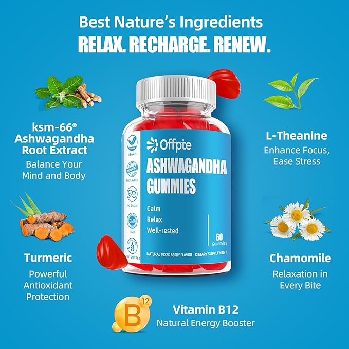 - Multi-Action Formula for Relaxation and Energy Support: Experience the powerful effects of our ashwagandha gummies, featuring 350 mg of Ashwagandha Root Extract, Vitamin D3, and B12 in every serving. These stress relief gummies help you stay relaxed and unwind after a long day while providing the natural energy boost you need to tackle daily challenges