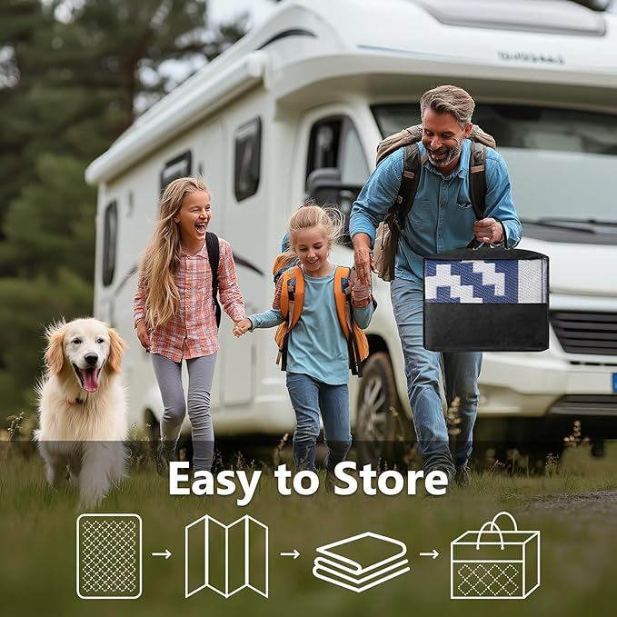 • LIGHTWEIGHT & EASY STORAGE: Store this balcony rug in seconds! It rolls up as slim as a yoga mat and fits in tight spaces. Perfect for RV trips, apartment balconies, or tossing in your camping gear.