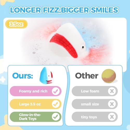 - Perfect Gift for Kids: Looking for the perfect surprise? Beautifully packaged and filled with excitement, these bath bombs with toys inside make thoughtful gifts for birthdays or holidays. Grandchildren and young families alike will cherish these joyful bath-time experiences.