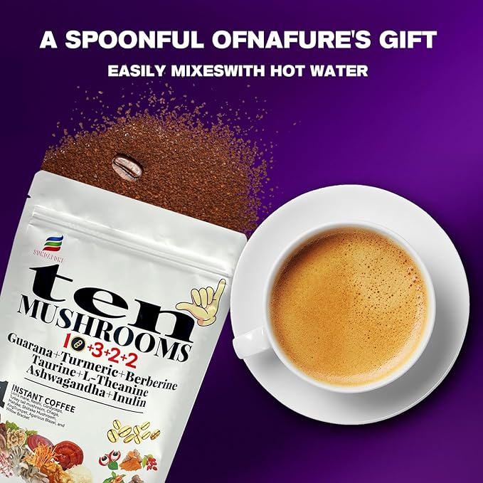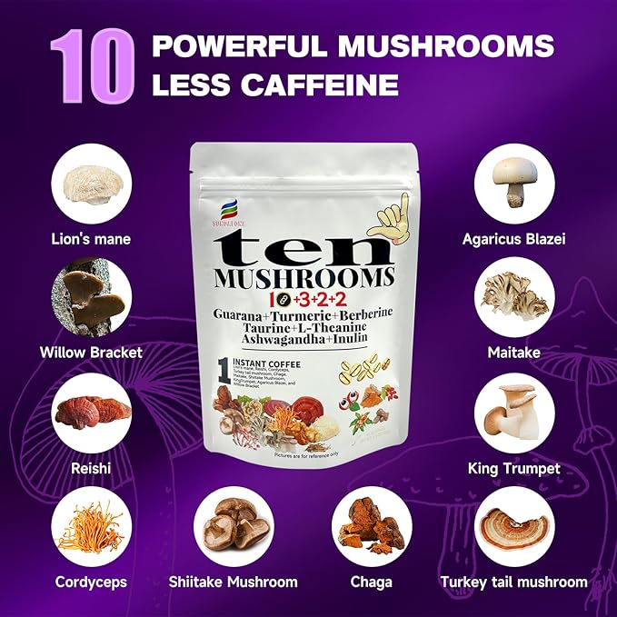 - 【Why should I care about your 10 mushrooms? Isn’t this just a gimmick?】:Great question! These aren’t random mushrooms—they’re carefully selected for real benefits. Lion’s Mane for mental clarity, Reishi for stress relief, and Chaga for immune support—these mushrooms aren’t just trendy, they’re backed by research. This isn’t hype, it’s wellness in every cup.