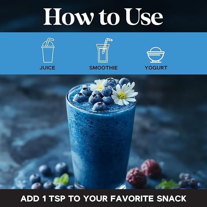 - VERSATILE FOR RECIPES – Use our blue spirulina powder in smoothies, shakes, energy bowls, or even baked goods. A perfect addition to your kitchen for a health-boosting touch.