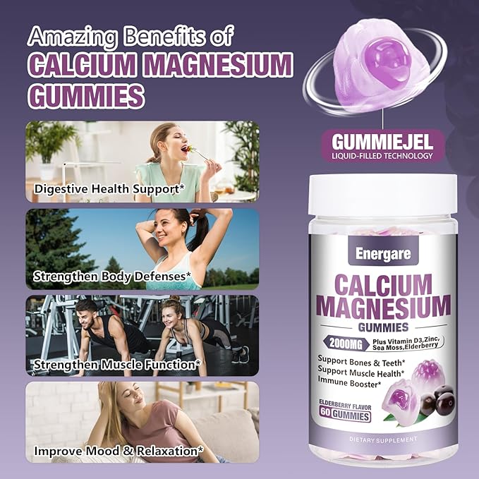 - Fun and Delicious - Energare calcium magnesium zinc gummies were created for those who seek a delicious and powerful health supplement! The Energare calcium gummies are specially designed in very cute shapes and provide an easy and delicious way to support bone muscle health. Enjoy the sweet taste and mouth-watering smell while improving your health.