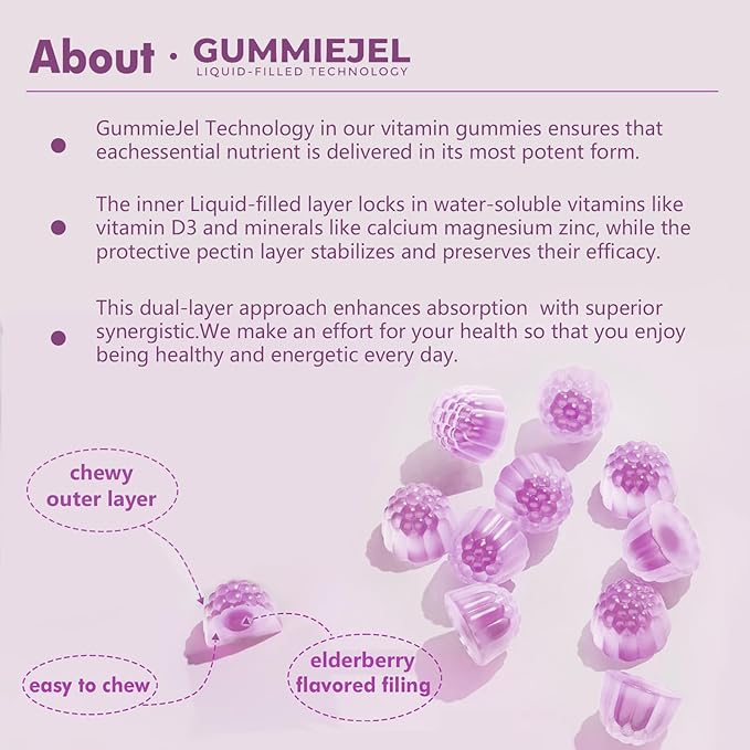 - Strong Absorption Liquid Filled Gummies: Energare Calcium, Magnesium and Zinc gummies use advanced filling technology with pectin protection in the outer layer and maintain a higher bioavailability of internal nutrients. This advanced technology encapsulates the maximum amount of temperature or PH sensitive active ingredients in the interior. Increased absorption capacity by 5 times compared to other traditional calcium, magnesium and zinc supplements.