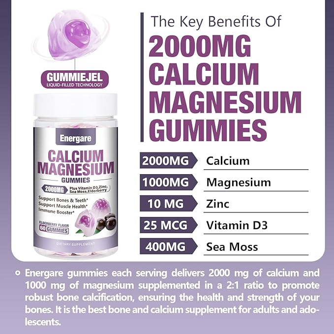 - Fun and Delicious - Energare calcium magnesium zinc gummies were created for those who seek a delicious and powerful health supplement! The Energare calcium gummies are specially designed in very cute shapes and provide an easy and delicious way to support bone muscle health. Enjoy the sweet taste and mouth-watering smell while improving your health.