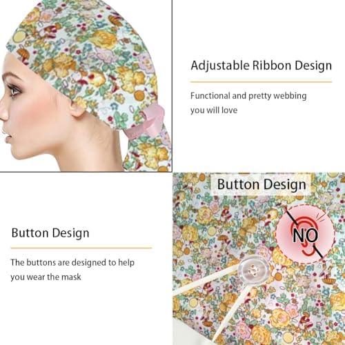 6Pcs Satin Lined Scrub Caps Women Ponytail, Adjustable Surgical Caps for Women, Scrub Hats, Nurse Cap, Nurse Surgical Hat with Button and Sweatband, Elastic Ponytail Pouch Tie Back