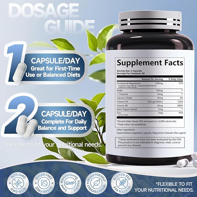 - 【Sleep and Energy Support】 Synergistic mix with Vitamin B6, D3, Calcium Citrate & Black Pepper Extract enhances absorption, promoting restful sleep, energy, nerve & bone supports.