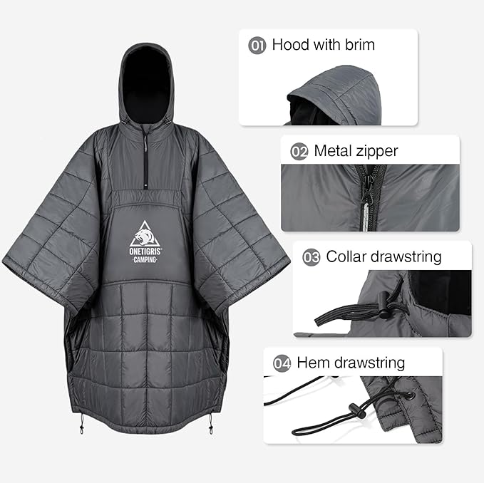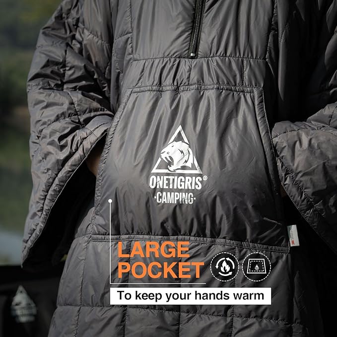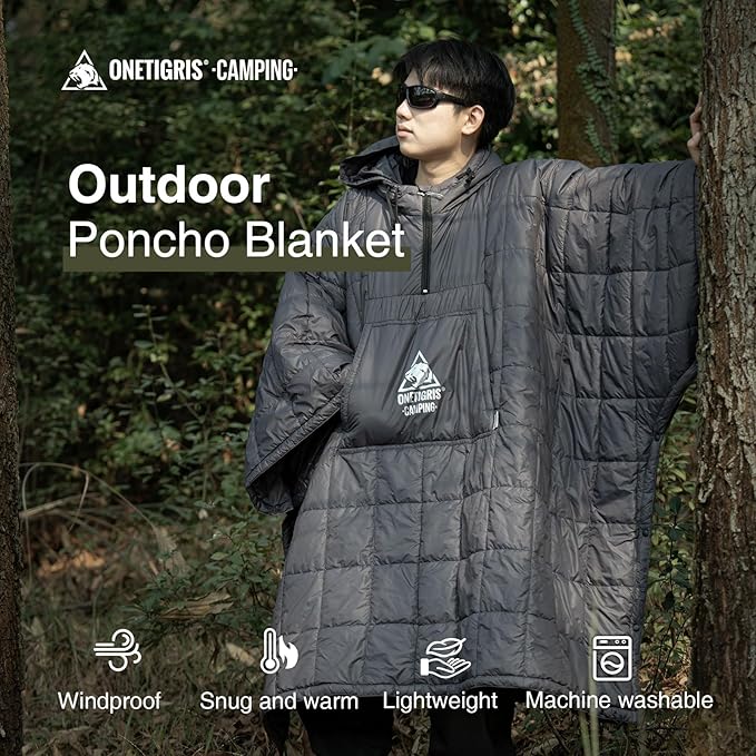 - Multifunctional Comfort: With buttons and elastic straps, OneTigris camping blanket effortlessly transforms into a poncho, sleeping bag, quilt, wearable blanket, or shawl. Slip on the drawstring hood, nestle your hands into the spacious pocket, and feel the warmth embrace you, all while staying free to mov
