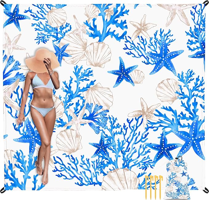• Ready for Summer: Gear up for summer by expanding your array of beach, camping, hiking, and picnic accessories. Relax in style with our blue beach blankets featuring coral, shell, and starfish patterns, adding a touch of ocean charm to your beach time