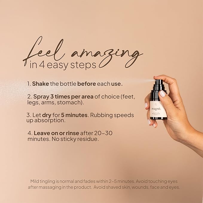 • NO REDNESS, NO BURN - Enjoy the soothing benefits of natural mineral magnesium oil without the burning or itching. Feel relaxed, at ease, and ready to take on the day, without skin irritation holding you back