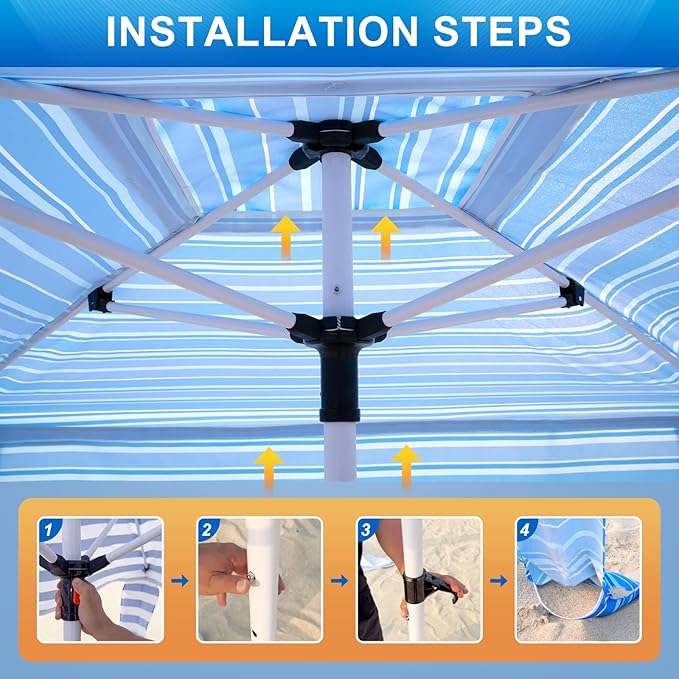 - 🌴 Beach Cabana - Easy Setup in 3 Mins: Fill the deluxe fabric bag with sand for instant assembly—no tools required! Set up as effortlessly as opening a beach umbrella, perfect for solo use or family fun.