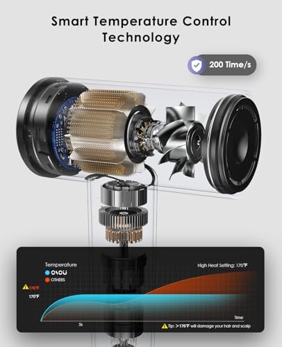 • Experience Lightning-Fast Drying: The OSOU DT01 hair dryer cuts drying time by an impressive 80%. Powered by a high-speed 150,000 RPM brushless motor, it blasts a strong 36 m/s airflow to effortlessly sculpt your desired hairstyle, ensuring you breeze through your morning routine with ease