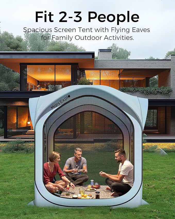 - Versatile & Comfortable Outdoor Experience: Perfect for various outdoor settings, this screen tent is great for relaxing in the backyard, hosting outdoor parties, or camping. It includes a hook for hanging lamps, allowing for extended use into the evening. The breathable design ensures comfort, while the mesh doors provide easy access and extra ventilation.